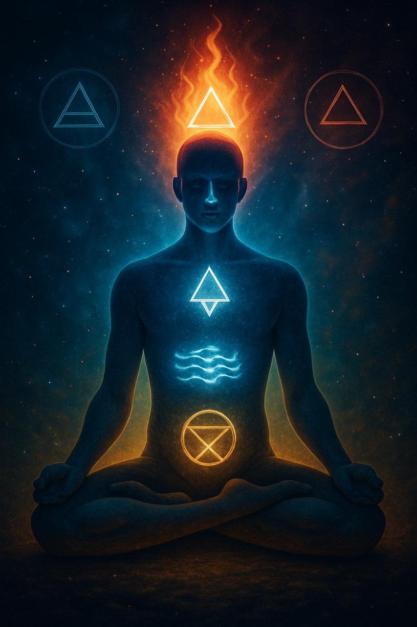 هو تمرين روحي-طاقي مستوحى من فنون الخيمياء الباطنية القديمة، يُستخدم لشحن الجسد الأثيري والجسم المادي عبر تفعيل العناصر الأربعة الكبرى: 🔥 النار، 💨 الهواء، 💧 الماء، 🌍 التراب.